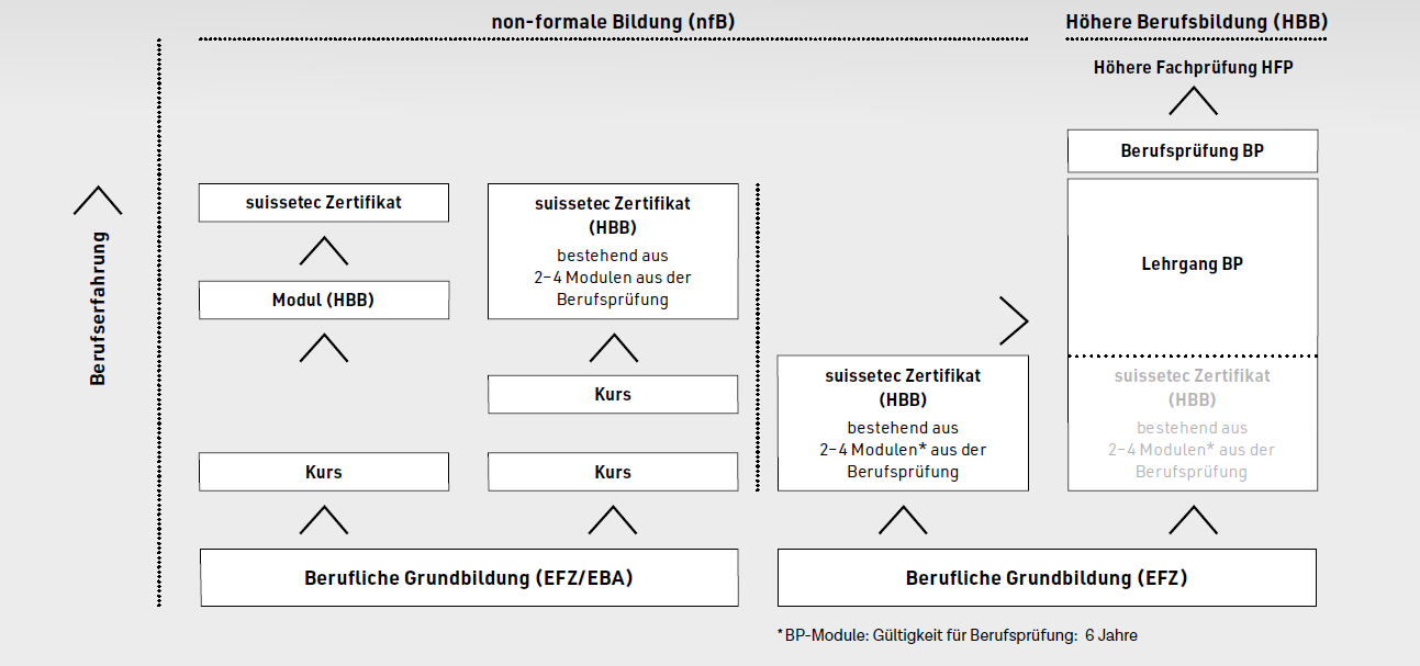 Gebäudetechnikern, die eine EFZ-Lehre abgeschlossen haben, stehen vielseitige Weiterbildungsmöglichkeiten offen. Die Ausbildungen zum Baustellenleiter, Chefmonteur, Polier oder Meister sind zukunftsgerichtet und bieten neue Perspektiven.